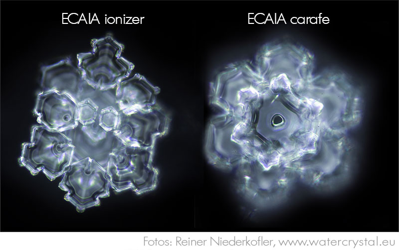 Diese Bilder zeigen die Wasserkristalle vom ECAIA Wasser aus der ECAIA carafe und dem ECAIA ionizer S, fotografiert von Rainer Niederkofler, Heilpraktiker aus Bruneck (Südtirol, Italien).